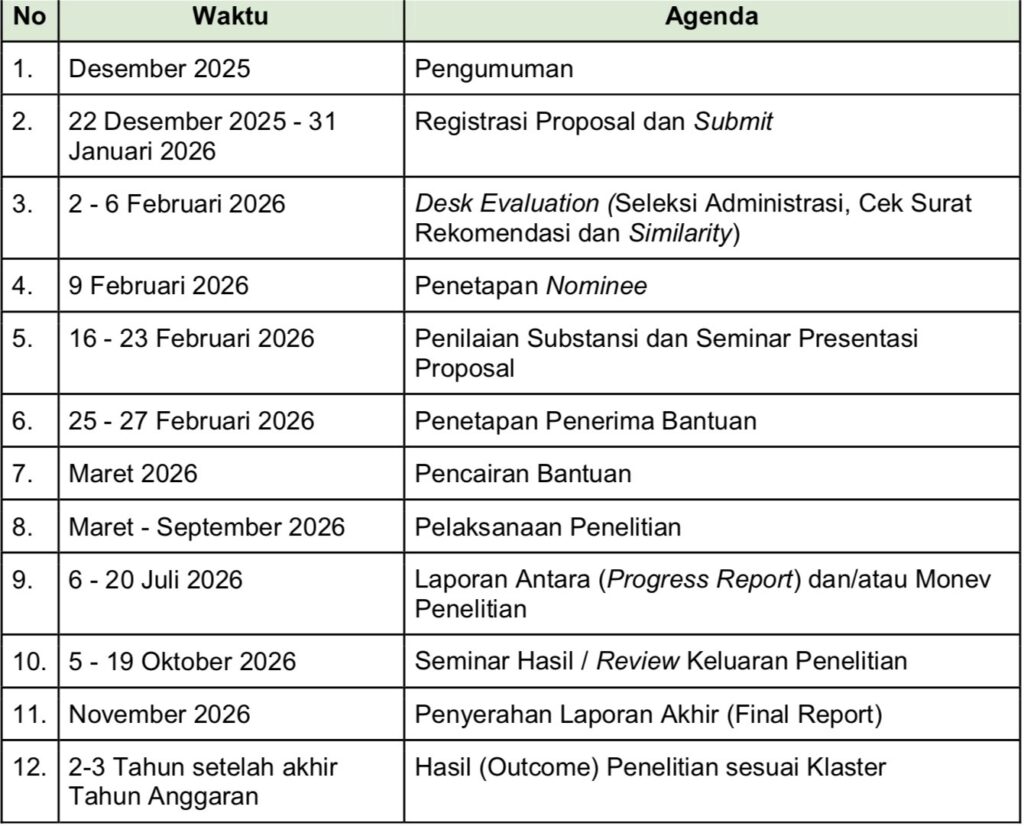 Berikut disampaikan pengumuman Penelitian Berbasis Standar Biaya Keluaran (SBK) pada LP2M UIN Maulana Malik Ibrahim Malang Tahun Anggaran 2026, agenda program penelitian sebagai berikut: