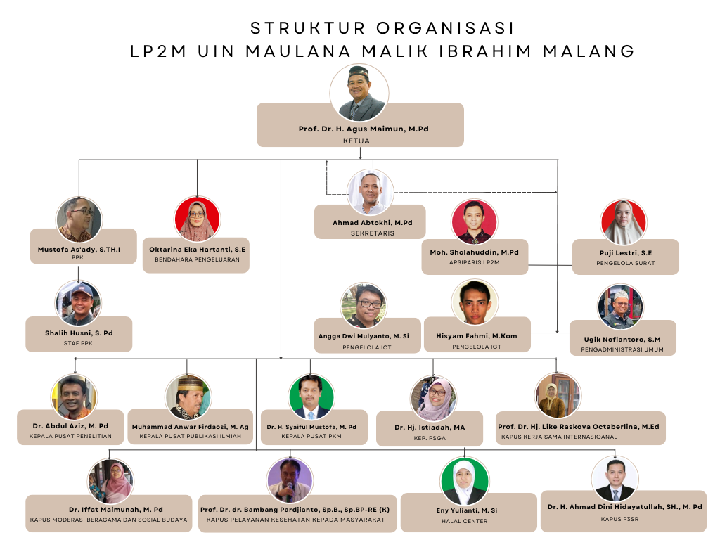 LP2M terdiri dari Ketua, Sekretaris, Pusat, dan Subbagian Tata Usaha, dengan struktur organisasi sebagai berikut: